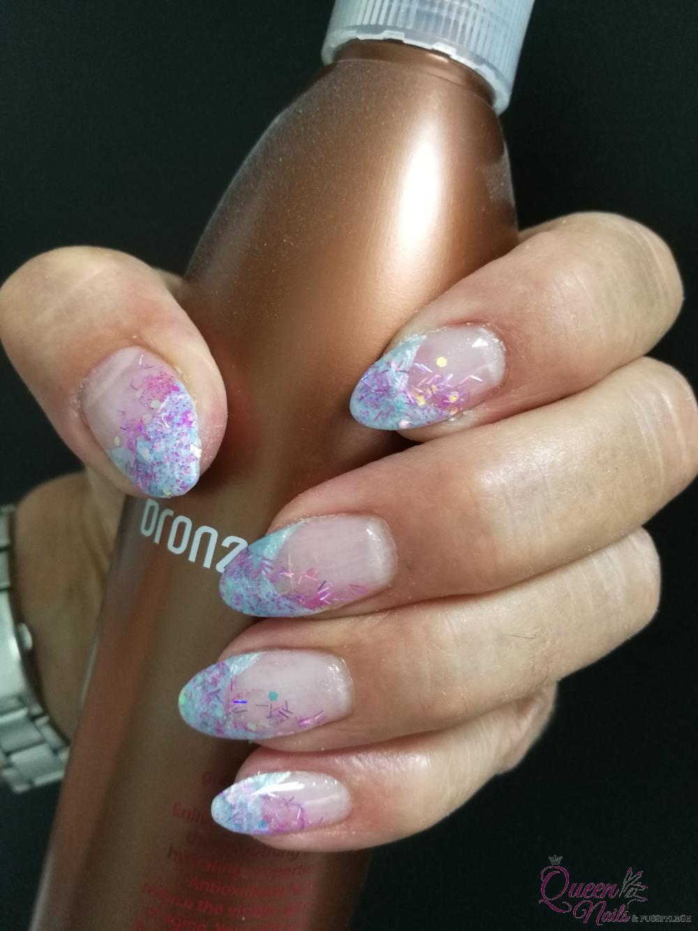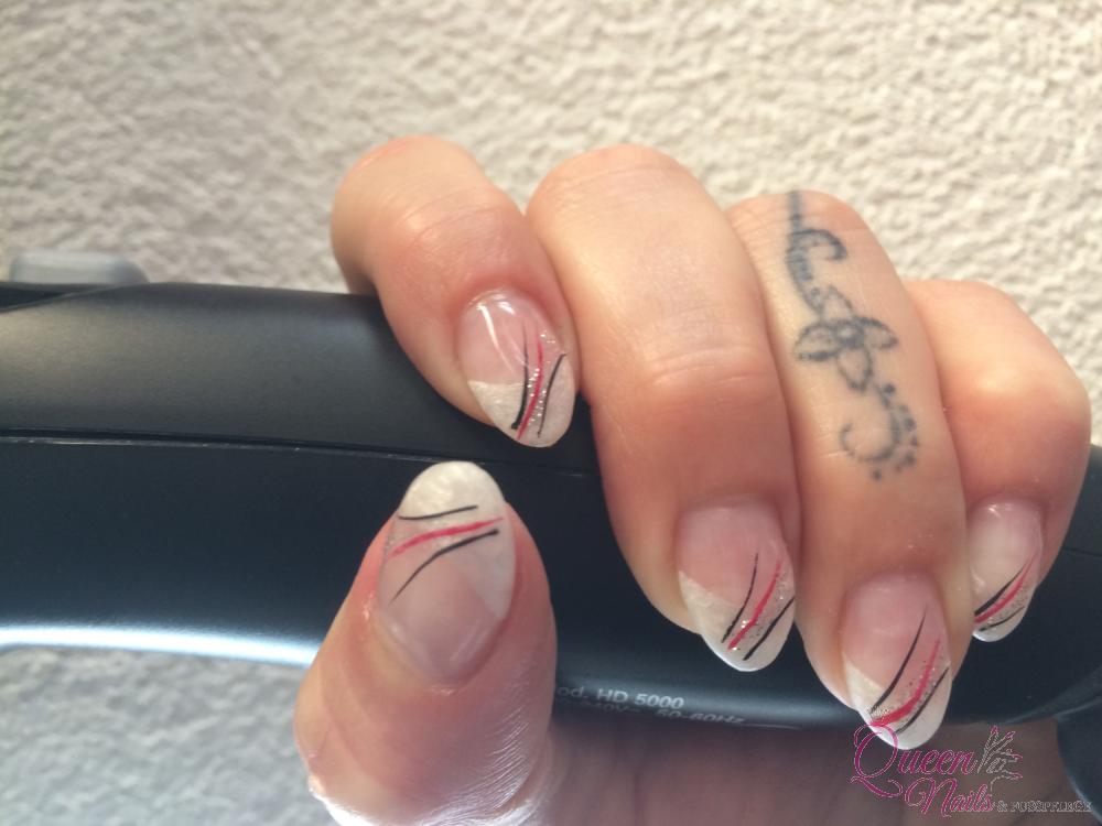 *Hier sind der Kreativität keine Grenzen gesetzt, ob Strasssteinchen, Muster oder einfach das klassische Gel French. Hält ca.10 - 12 Wochen.